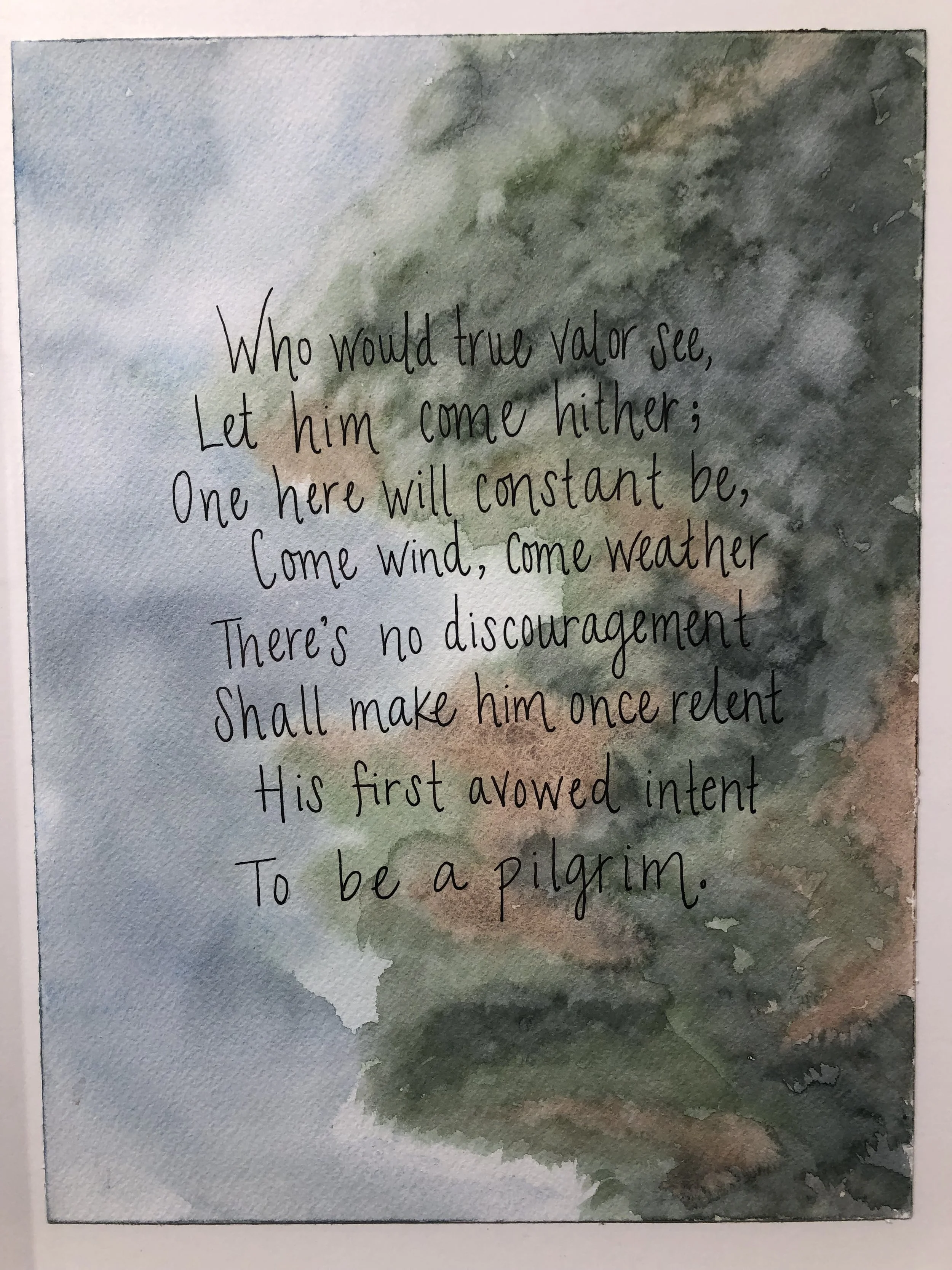 “This hill, though high, I covet to ascend; The difficulty will not me offend. For I perceive the way to life lies here. Come, pluck up, heart; let’s neither faint nor fear. Better, though difficult, the right way to go, than wrong, though easy, where the end is woe.”