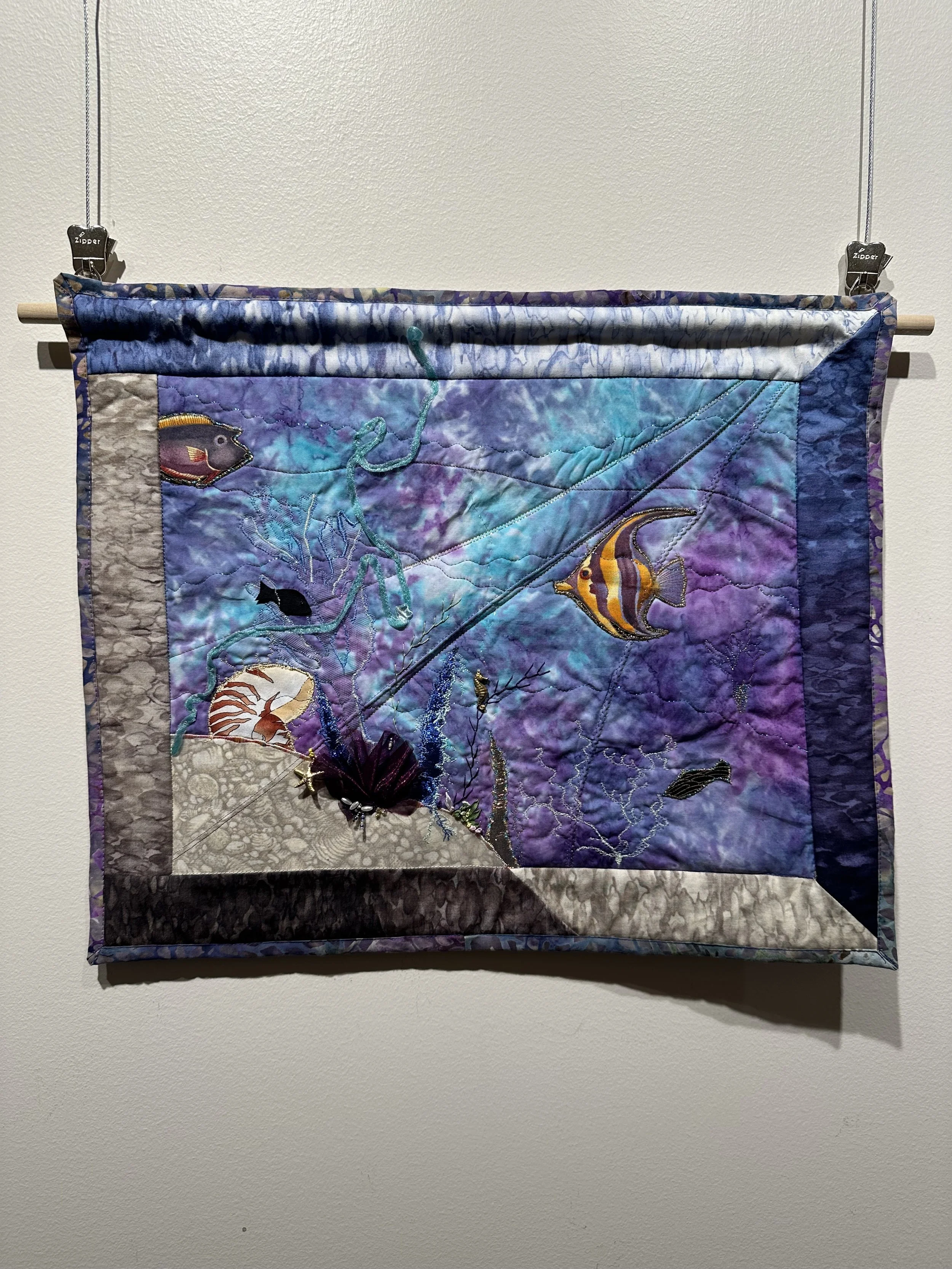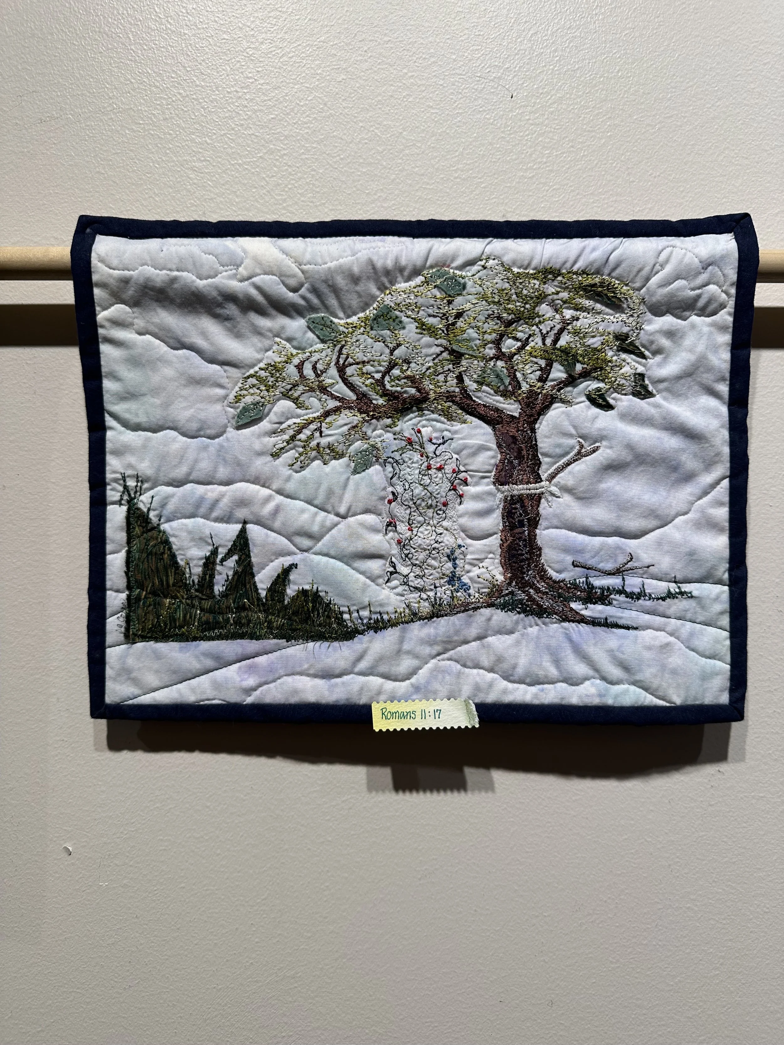 The first quilting class I attended was at the Chapel during a Wednesday morning Ladies Class. Frances Sennet and Phyllis Wright guided the class in the late 1980s. Most of the quilts I make are given as gifts or used as class samples. Maybe because my parents were children of the Great Depression era, we were taught not to waste anything; so, I can hardly throw away a scrap of fabric, and this is where many of my materials come from. John 6:12 states it well after Jesus fed the 5,000 — “now gather the leftovers so that nothing is wasted.” Recently, Crisis Pregnancy Center sent out a request for “baby boy” quilts. Finding a few unfinished tops, I decided to complete them and donate them to snuggle someone’s sweet baby boy in. This is my art and heart.