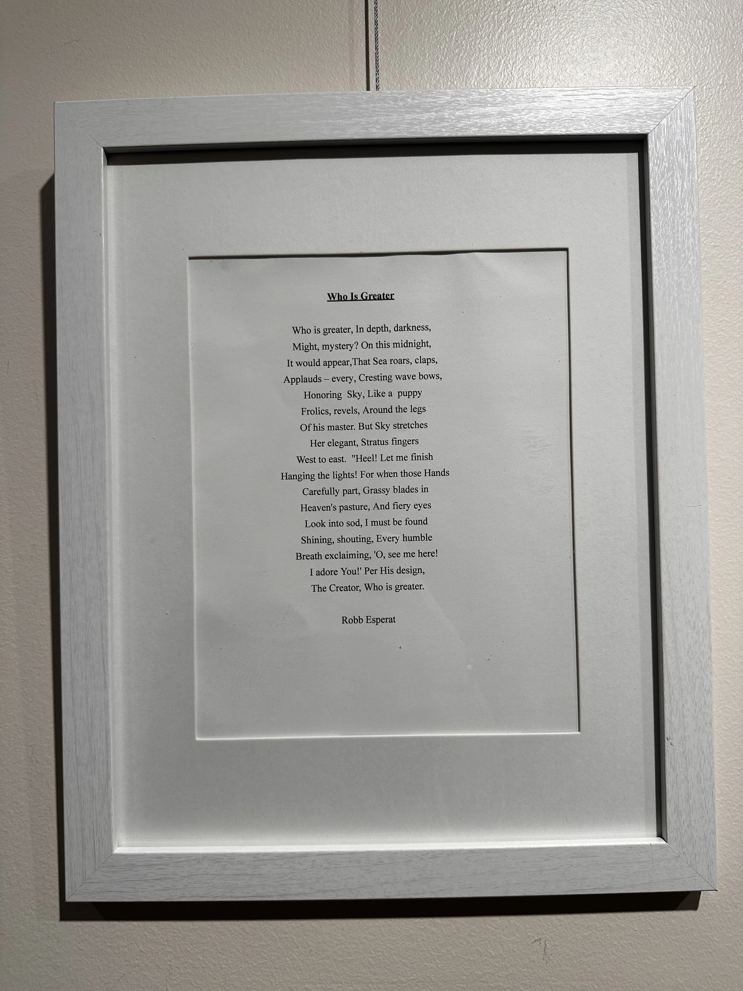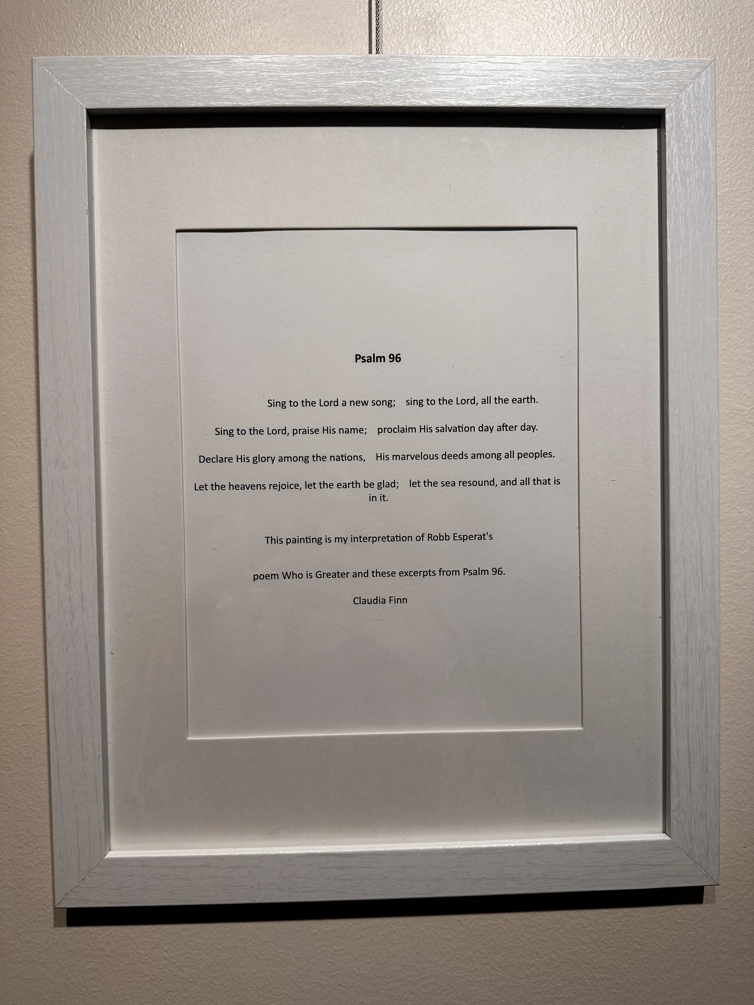 The Psummer Psalms pulpit series this year will focus on spiritual disciplines. That is, we will be meditating on the habits of relating to God that bring health and flourishing into our spiritual lives. The Psalms in our 2025 lineup will focus on a wide variety of practical ways we can care for and attend to our spiritual growth, and they will include Psalms 92, 119, 113, 51, 118, 86, 107, 96, and 102. The title of the exhibit, “Like the Cedars of Lebanon,” comes from Psalms 92 and celebrates the flourishing that comes form the habit of sabbath, from consistently making room in our busy lives to give attention to the goodness and righteousness of God in Christ.